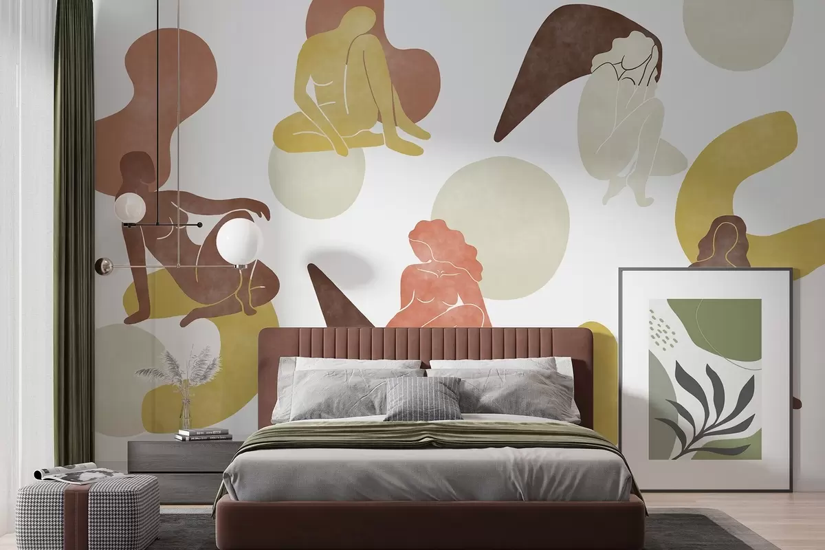 Тапете за зид Геометријске апстракције са женским силуетама, бохо стил, браон, беж, жута бр. w03753v2