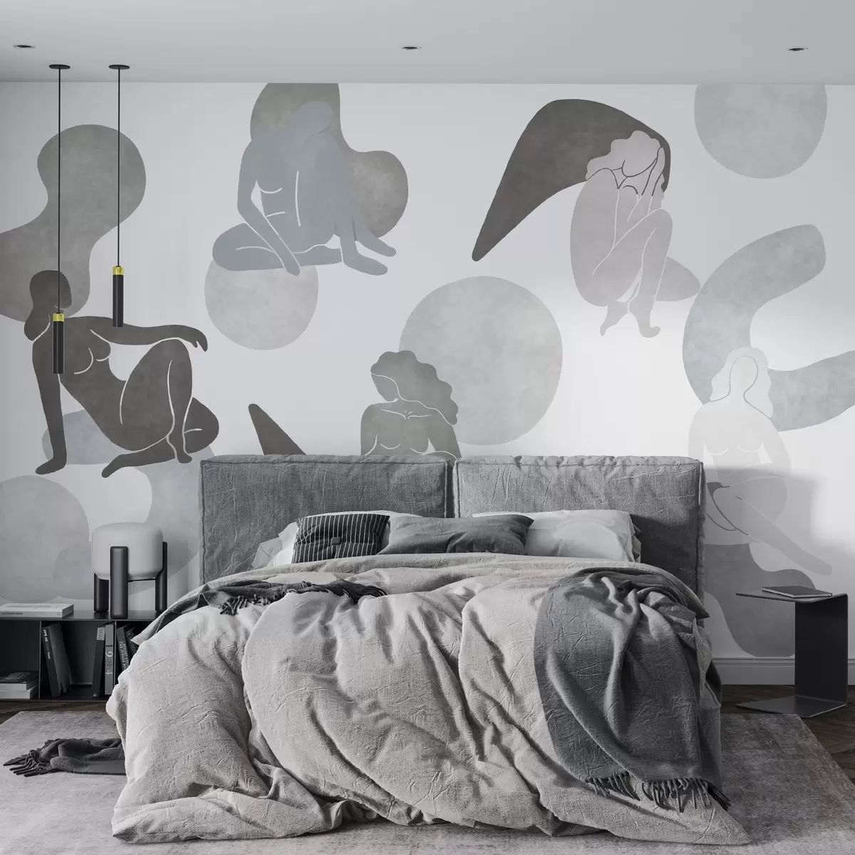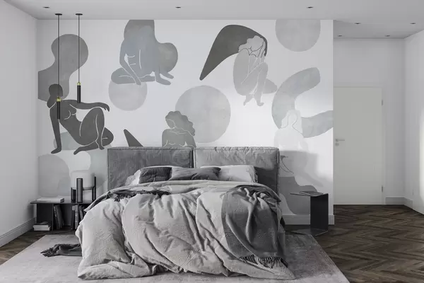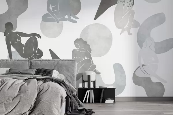Тапете за зид Геометријске апстракције са женским силуетама, бохо стил, сиве боје бр. w03753v5