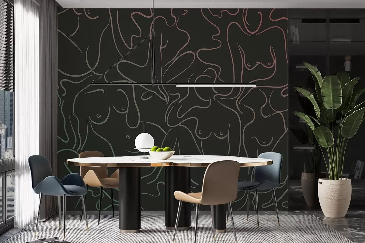 Тапете за зид Цртање линија анатомске силуете, апстракција, тамна позадина бр. w03755v2