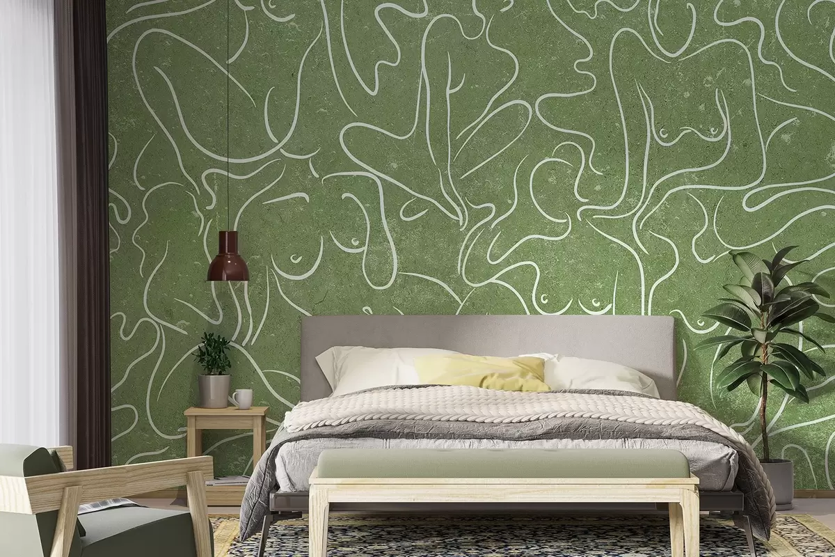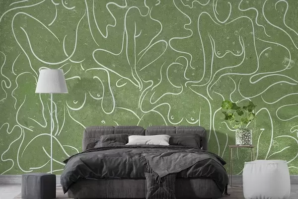 Тапете за зид Цртање линија анатомске силуете, апстракција, зелена позадина бр. w03756v2