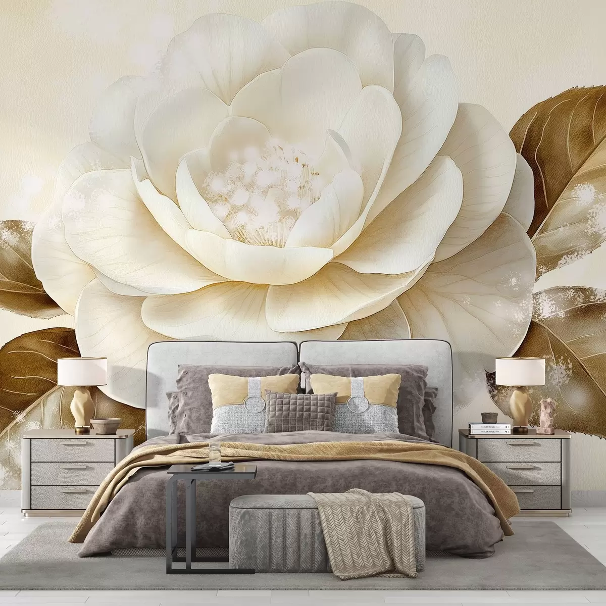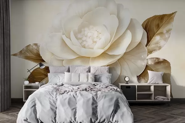 Тапете за зид Предиван цвет божура у беж бојама бр. w03757
