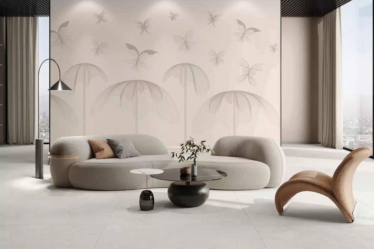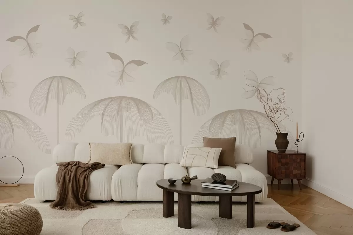 Тапете за зид минималистички линеарни лептири за тапете и фонтане на млечној позадини бр. w03762