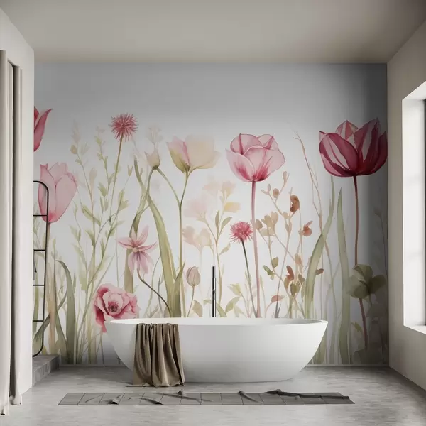 Тапете за зид Мека ливаде, лале, цвеће, стабљике, лишће, дивље биљке бр. w03785