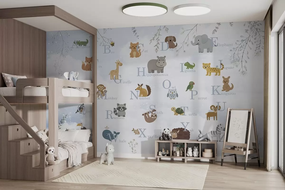 Тапете за зид Абецеда са плавим словима, биљкама и небом бр. w03809v1