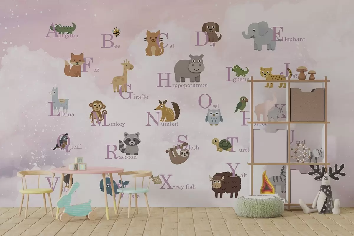 Тапете за зид Абецеда са ружичастим словима на позадини неба бр. w03810