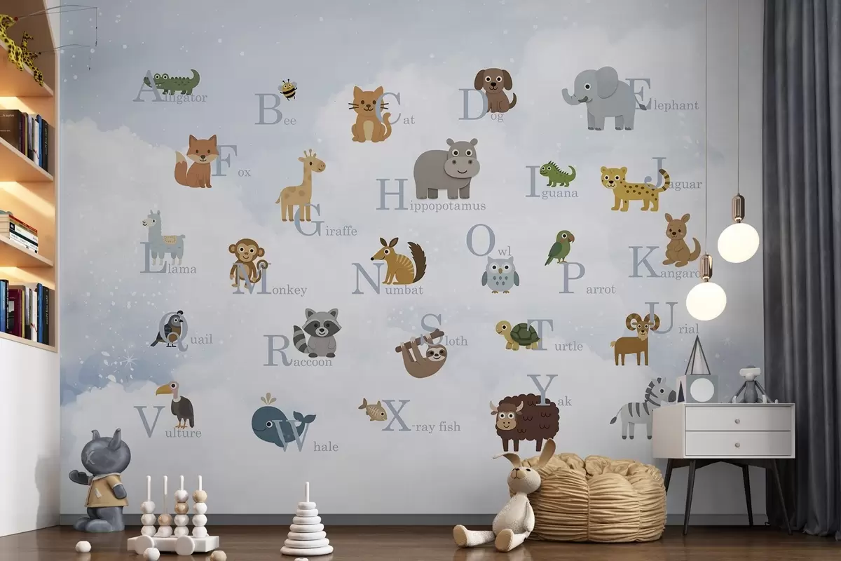 Тапете за зид Абецеда са плавим словима на позадини неба бр. w03810v1