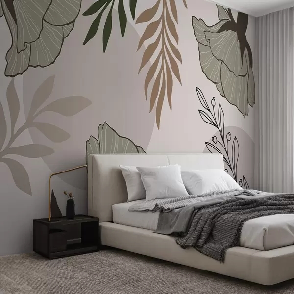 Тапете за зид Цвеће и лишће у апстрактној композицији бр. w03856