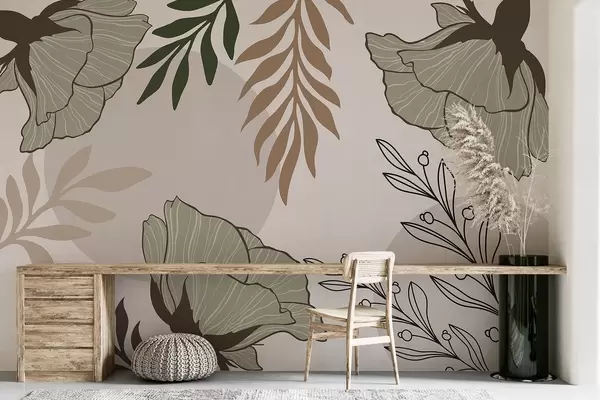 Тапете за зид Цвеће и лишће у апстрактној композицији бр. w03856