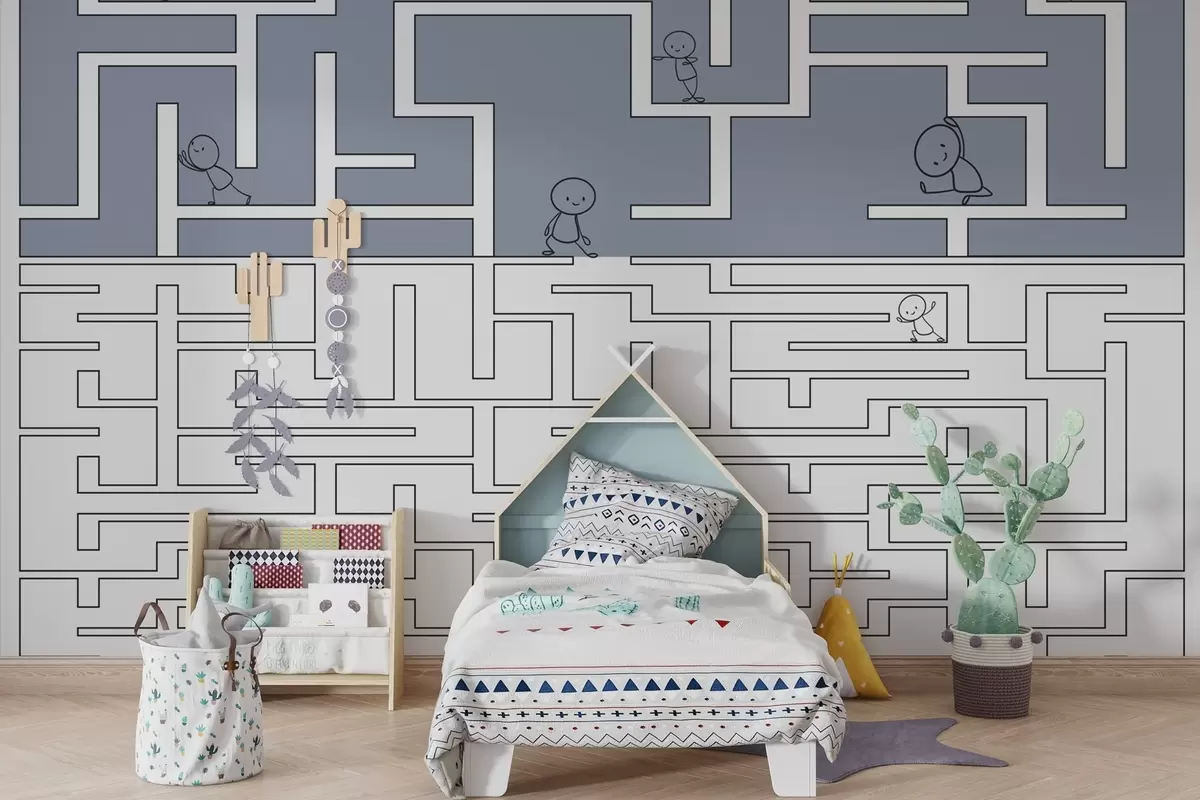 Тапете за зид Лавиринт у плавој и белој боји бр. w03873v2