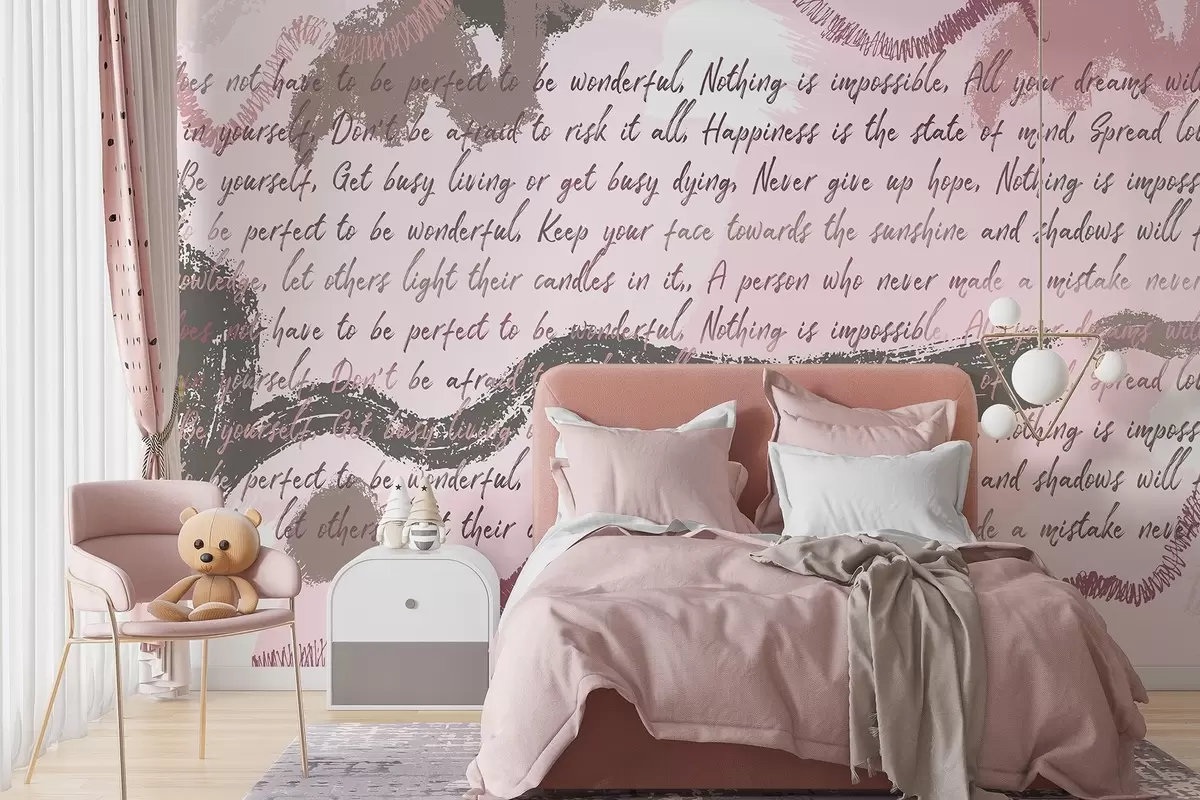 Тапете за зид Дизајн са инспиративним цитатима, апстракцијом, ружичастим бојама бр. w03909v3