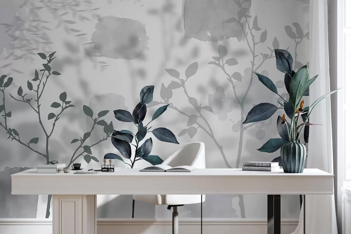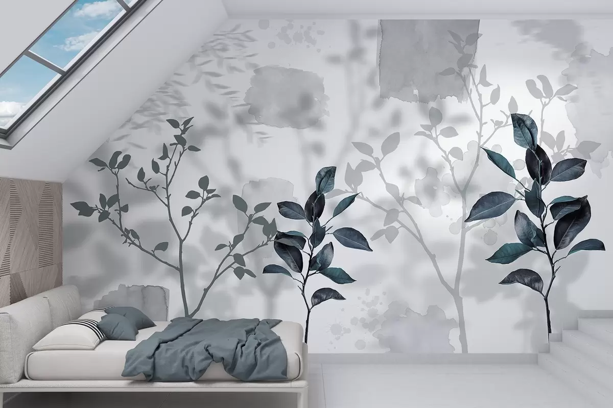 Тапете за зид Листови лимунског дрвета, сенке грана дрвећа, природа, акварел, плава бр. w03910v2