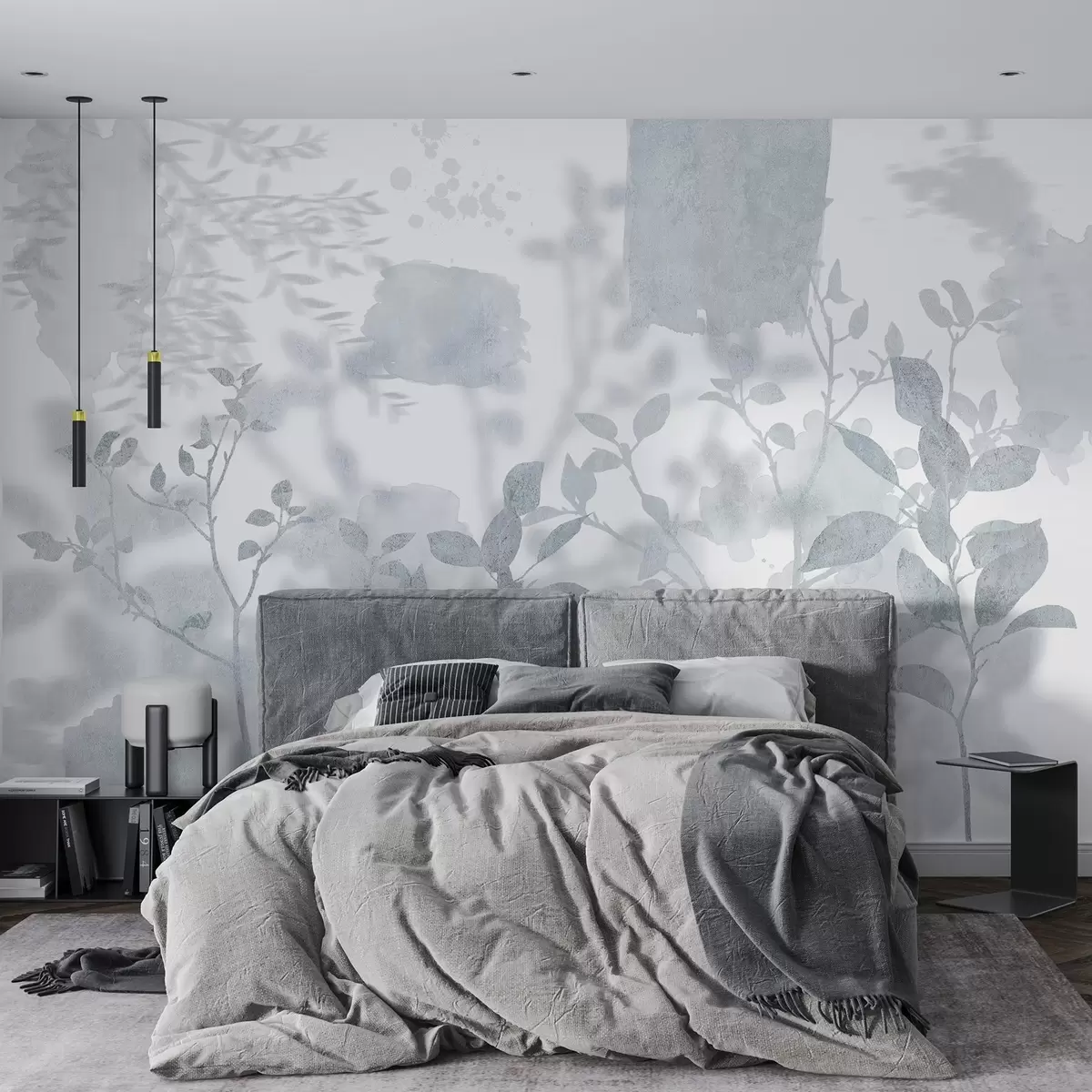 Тапете за зид Силуете дрвећа, гране, природа, акварел, плаве боје бр. w03911v2