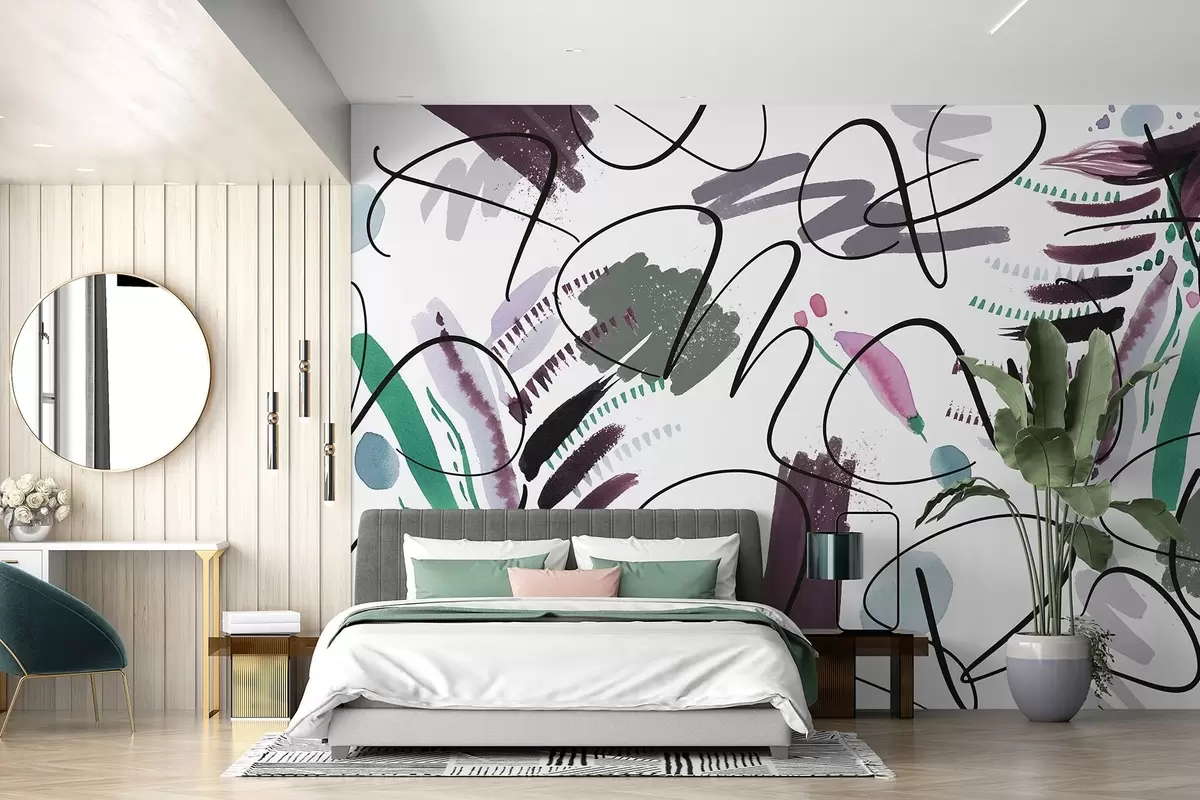 Тапете за зид Слова мастила, калиграфија, потези четкицом, пастелне боје, апстракција бр. w03912v1