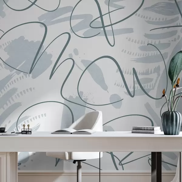 Тапете за зид Калиграфска апстракција са словима, потези четкице, плава боја бр. w03913v1