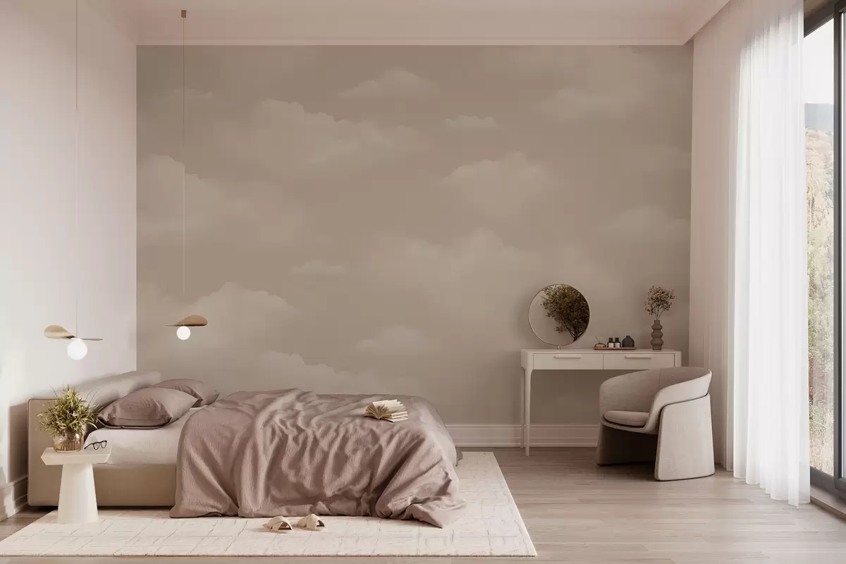 Тапете за зид Кремасти облаци на светло беж позадини бр. w03994