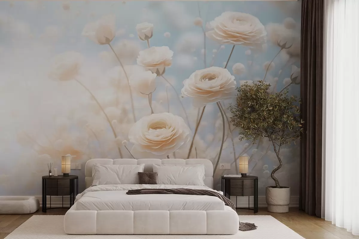 Тапете за зид Нежне кремасте руже на светлоплавој позадини бр. w03997