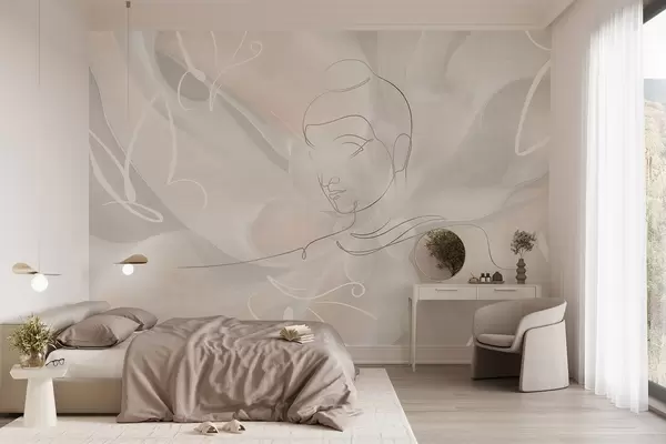 Тапете за зид Цветна апстракција са цртежом Буде, беж боје бр. w04004