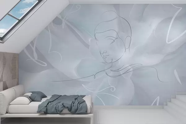 Тапете за зид Цветна апстракција са цртежом Буде, плаве боје бр. w04004v1