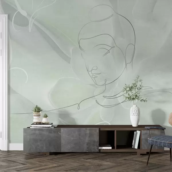 Тапете за зид Цветна апстракција са цртежом Буде, зелене боје бр. w04004v3