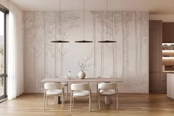 Тапете за зид Шума са брезама, минимализам, природа, беж палета боја бр. w04009v3