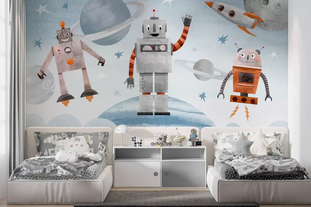 Тапете за зид Роботи у свемиру у стилу акварела бр. w04016