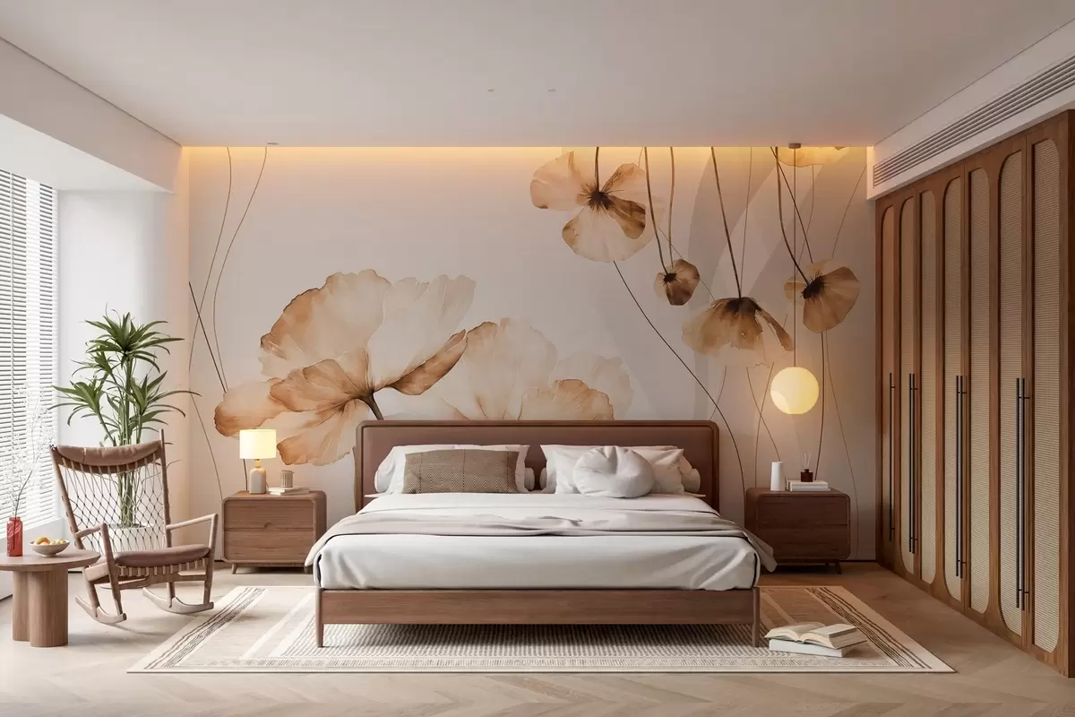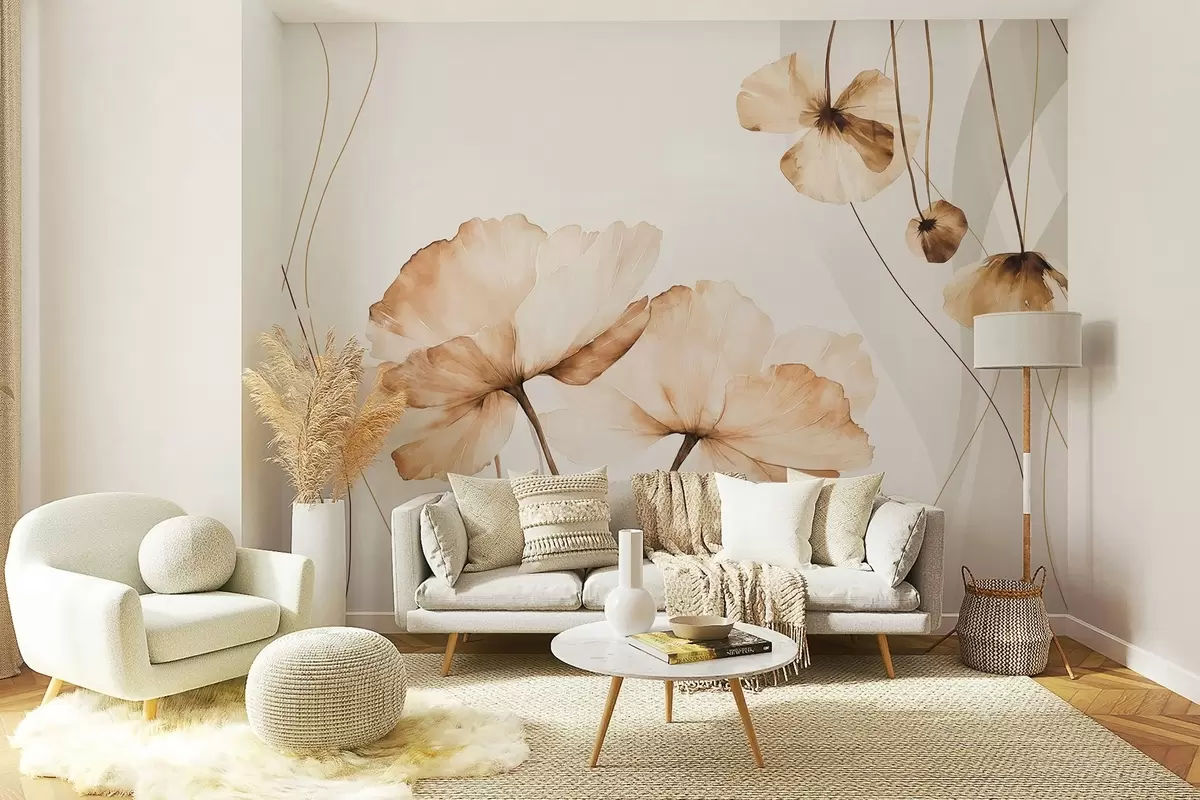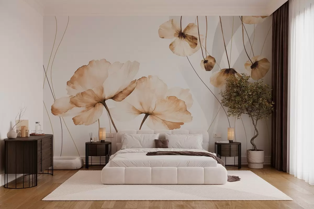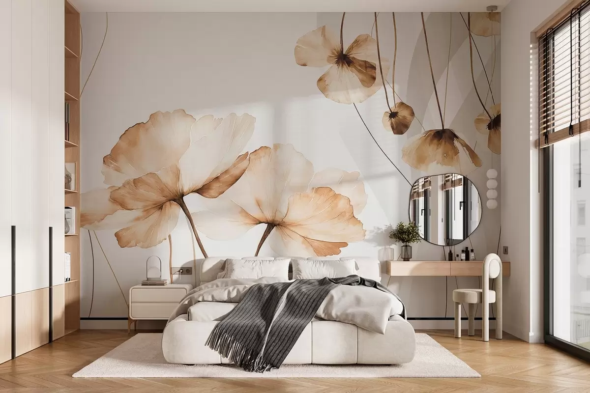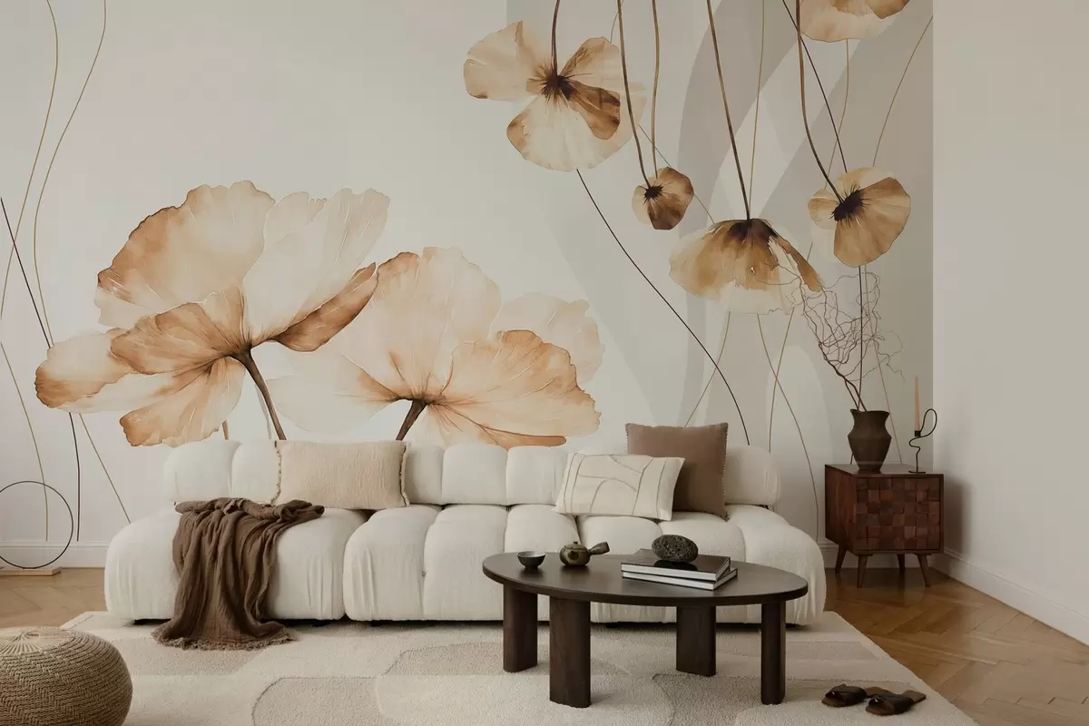 Тапете за зид цвеће у акварел стилу у смеђим тоновима бр. w04026