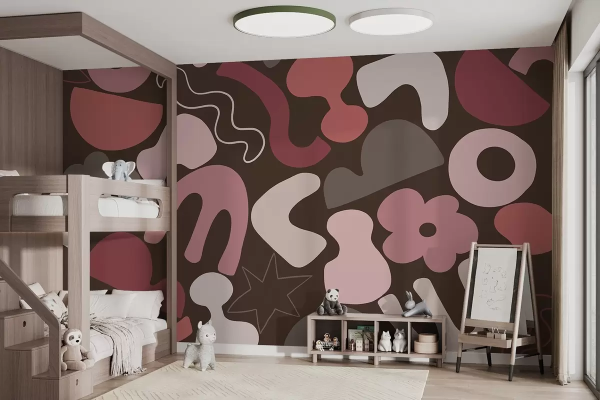 Тапете за зид Геометријске фигуре, малолетничке, апстракција, тамно бордо позадина бр. w04067