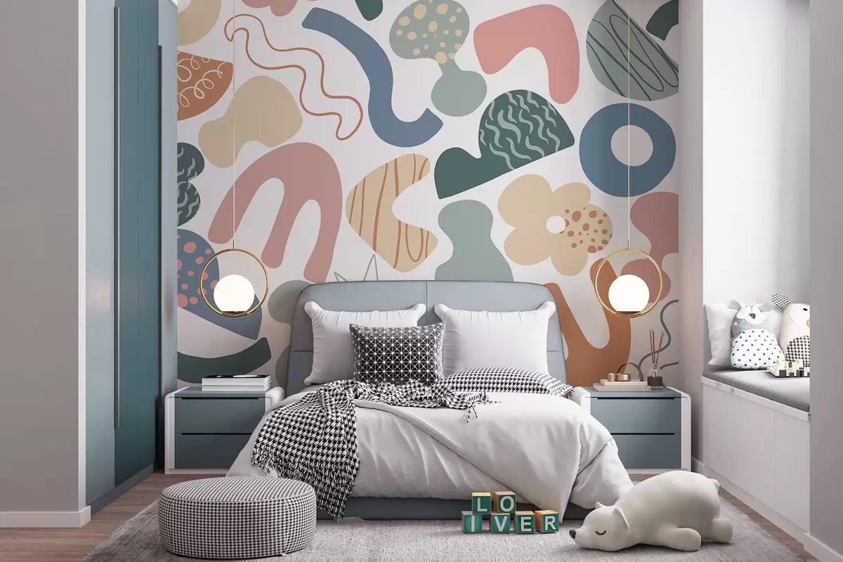 Тапете за зид Геометријске фигуре са цртежима, малолетничке, зелене, ружичасте, плаве бр. w04068v2