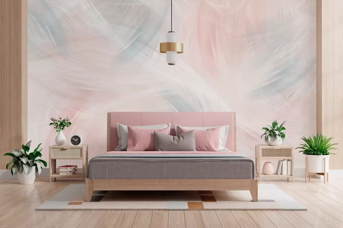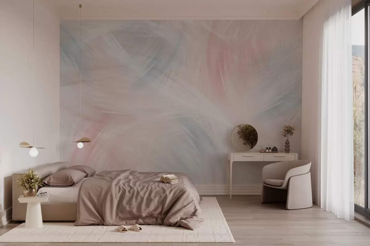 Тапете за зид прозрачно перје у нијансама ружичасте и плаве бр. w04071