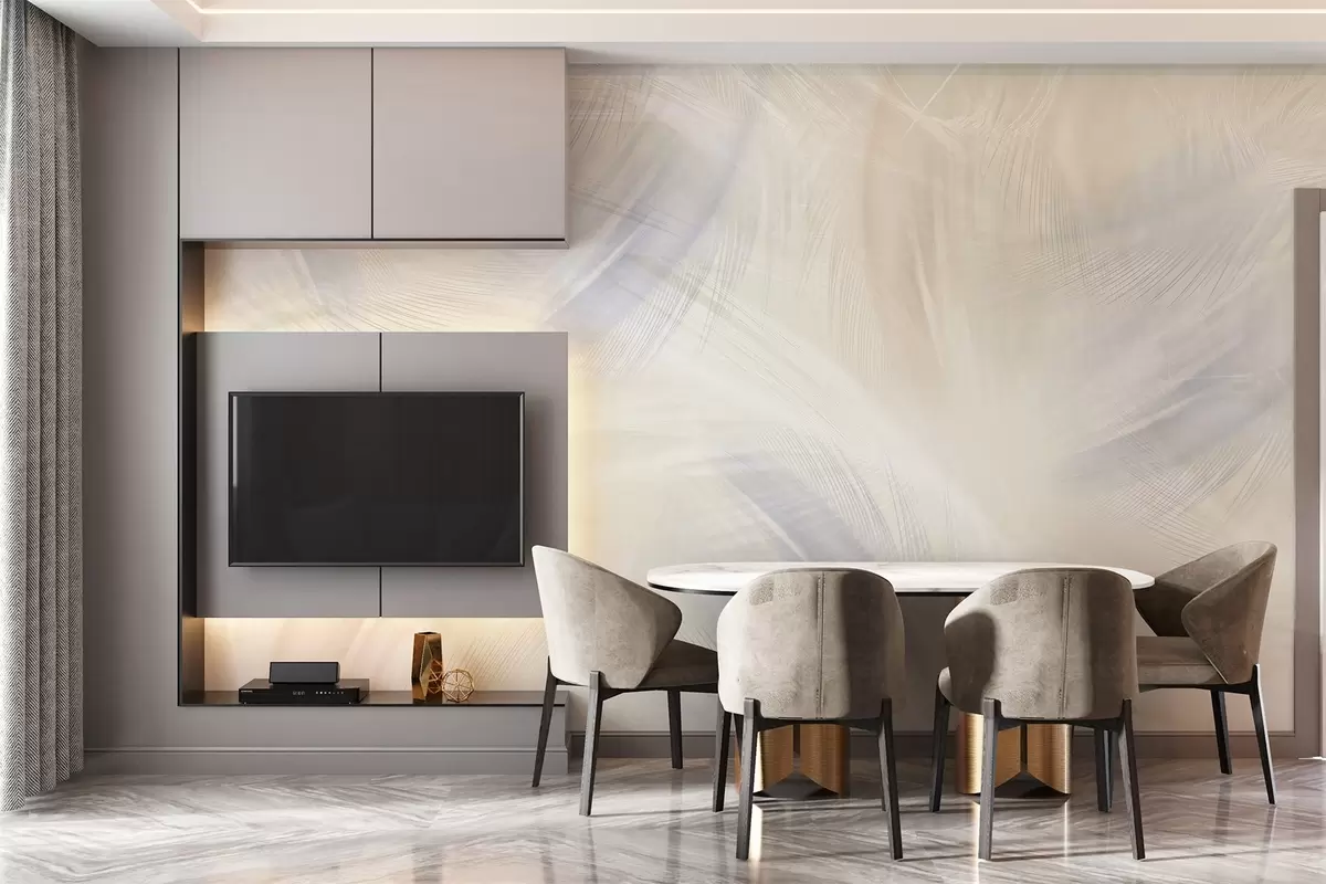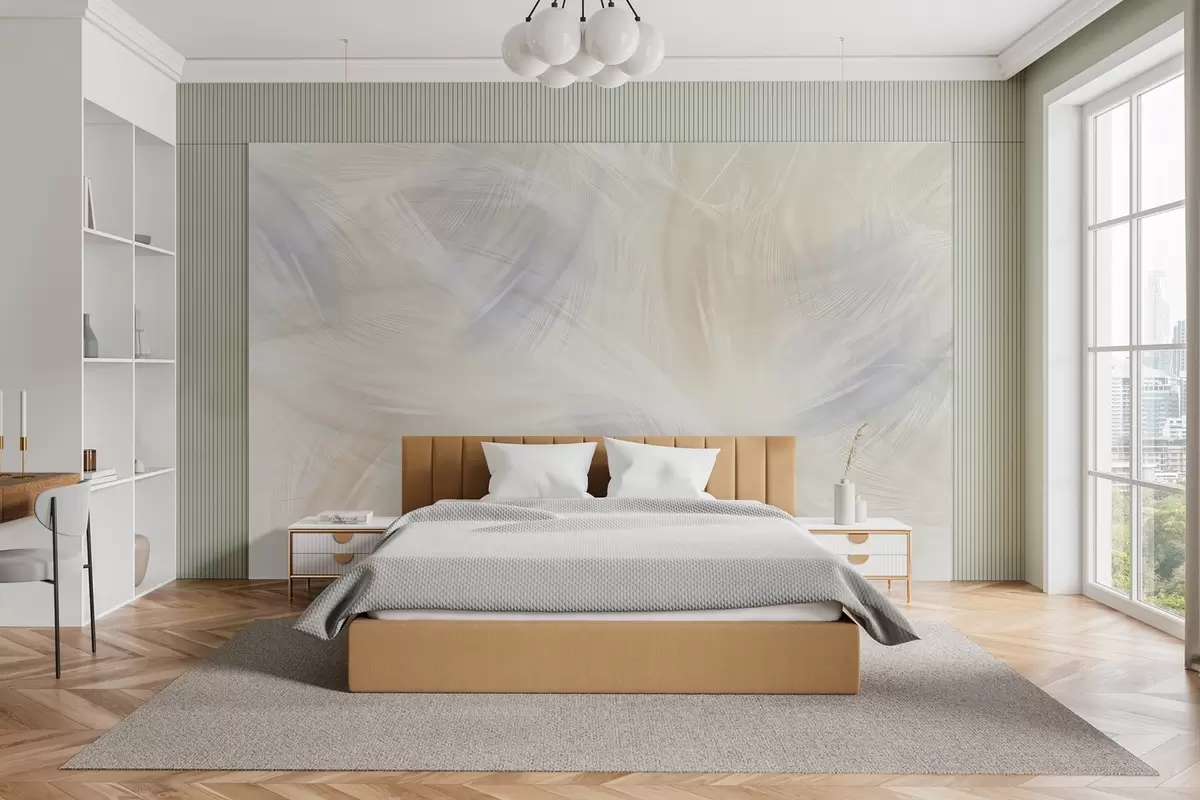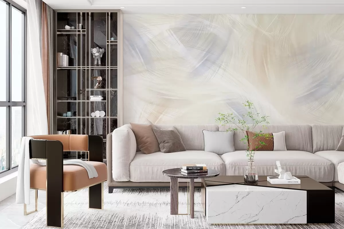 Тапете за зид прозрачно перје у нијансама плаве и беж бр. w04071v2