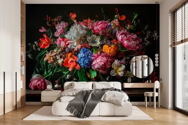 Тапете за зид букет у стилу холандског уљаног сликарства XVII века са луксузном цветном композицијом. бр. w04078