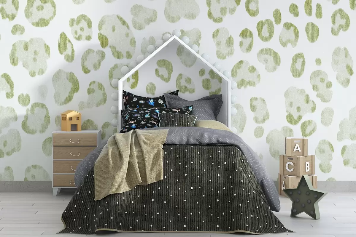 Тапете за зид Леопард принт, текстура вуне, зелена боја бр. w04112v3