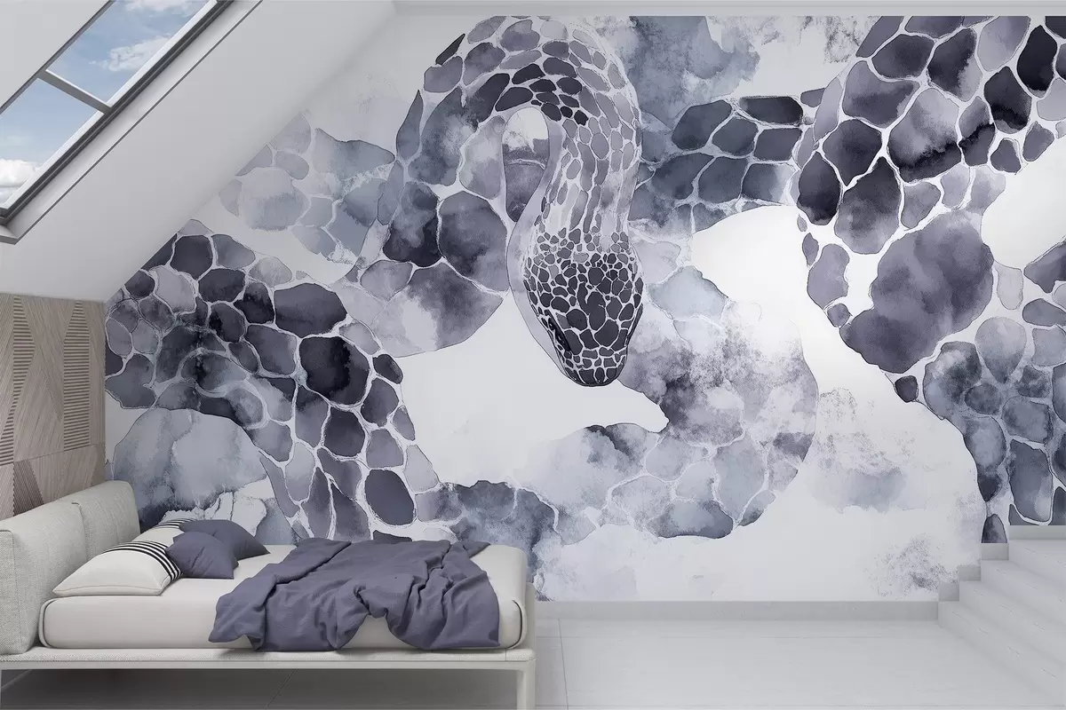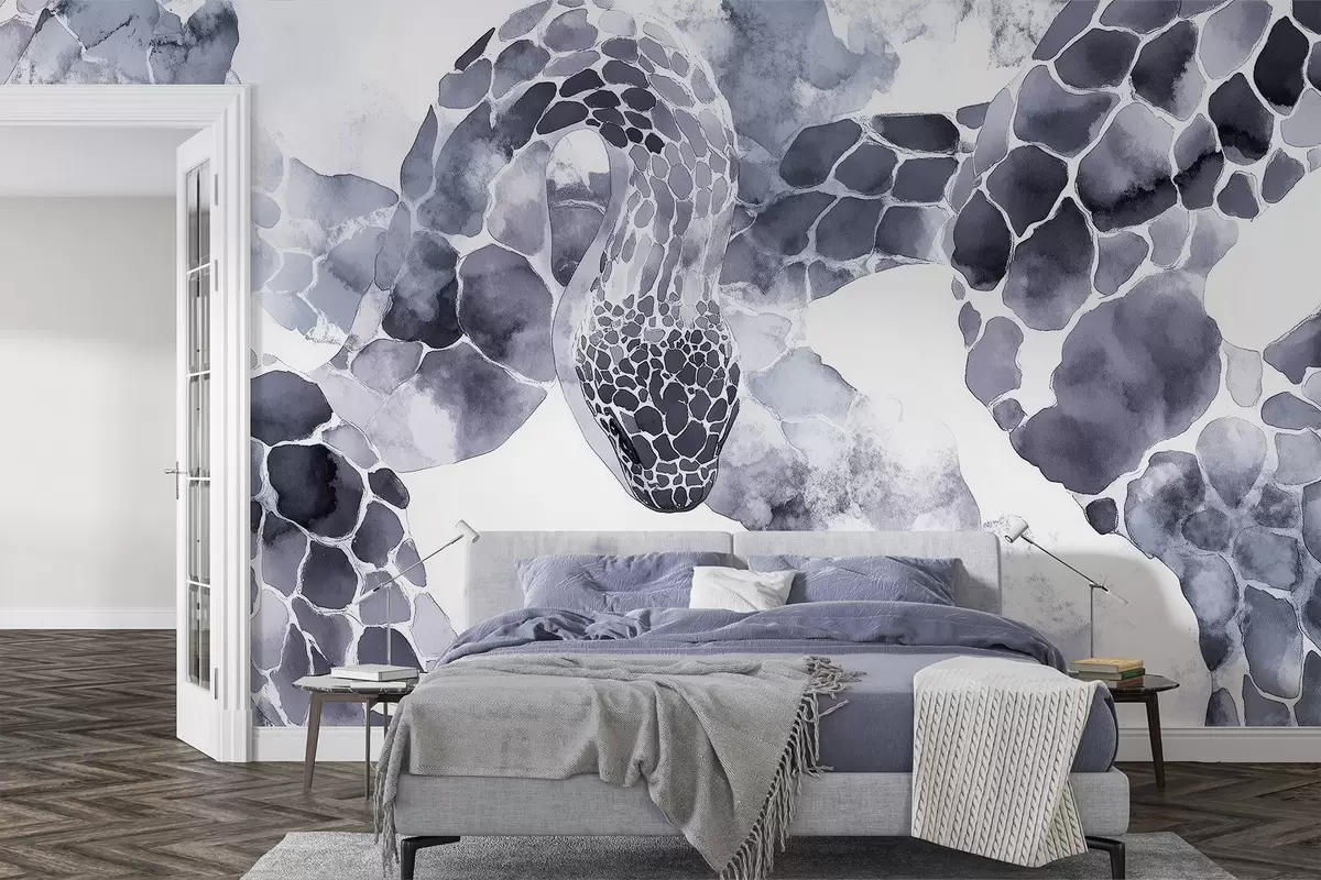 Тапете за зид Силуета змије, акварел стил, плаве боје бр. w04113