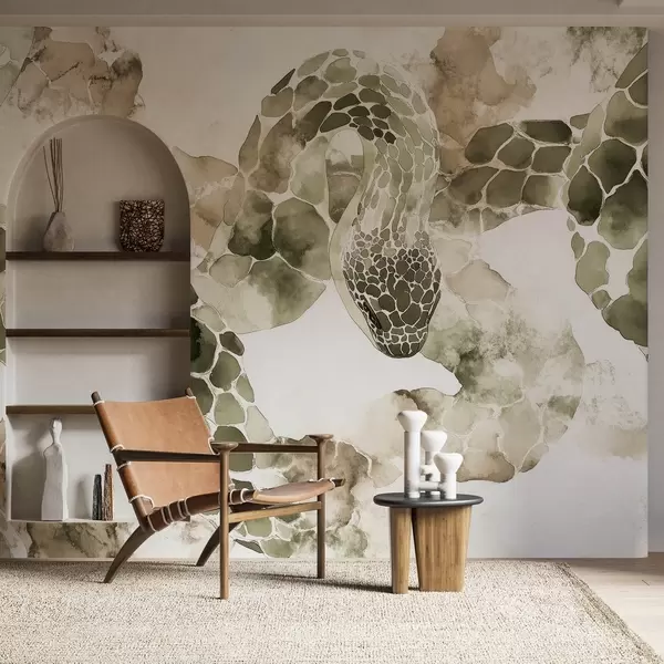 Тапете за зид Силуета змије, акварелни стил, маслинасте боје бр. w04113v3