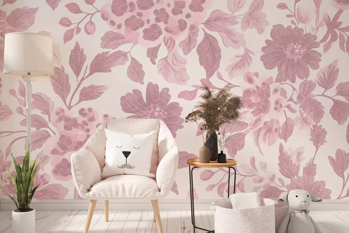 Тапете за зид Цвеће у бохо стилу са леопард принтом, ружичасте боје бр. w04114v3