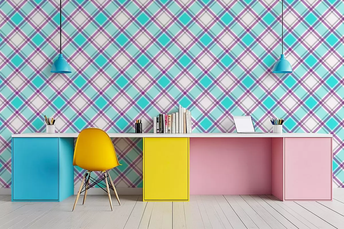 Тапете за зид карирани узорак у плавим тоновима бр. w04167