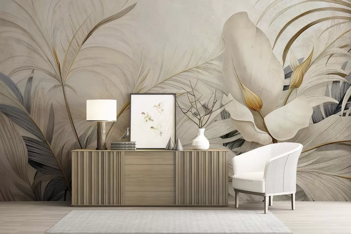 Тапете за зид Тропске биљке на бетонском зиду бр. w04249