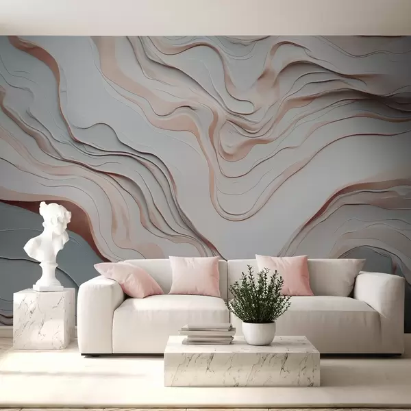 Тапете за зид слојеви, таласи, апстракција, ружичаста, сива, меки облици, бр. w04255v1