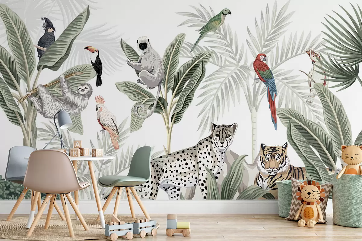 Тапете за зид Животиње и птице у џунгли бр. w04268