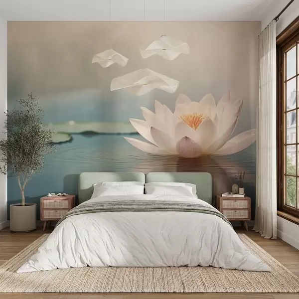 Тапете за зид Бели лотосов цвет на води бр. w04272