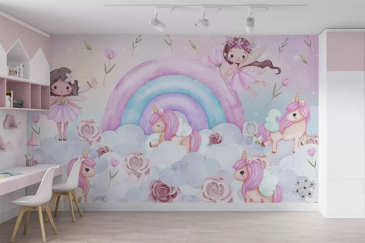 Тапете за зид Виле и једнорози међу облацима и дугама бр. w04371