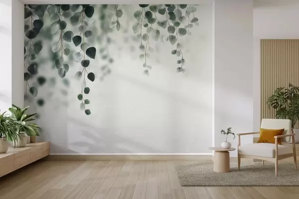 Тапете за зид Падајући еукалиптус на светлој позадини бр. w04393