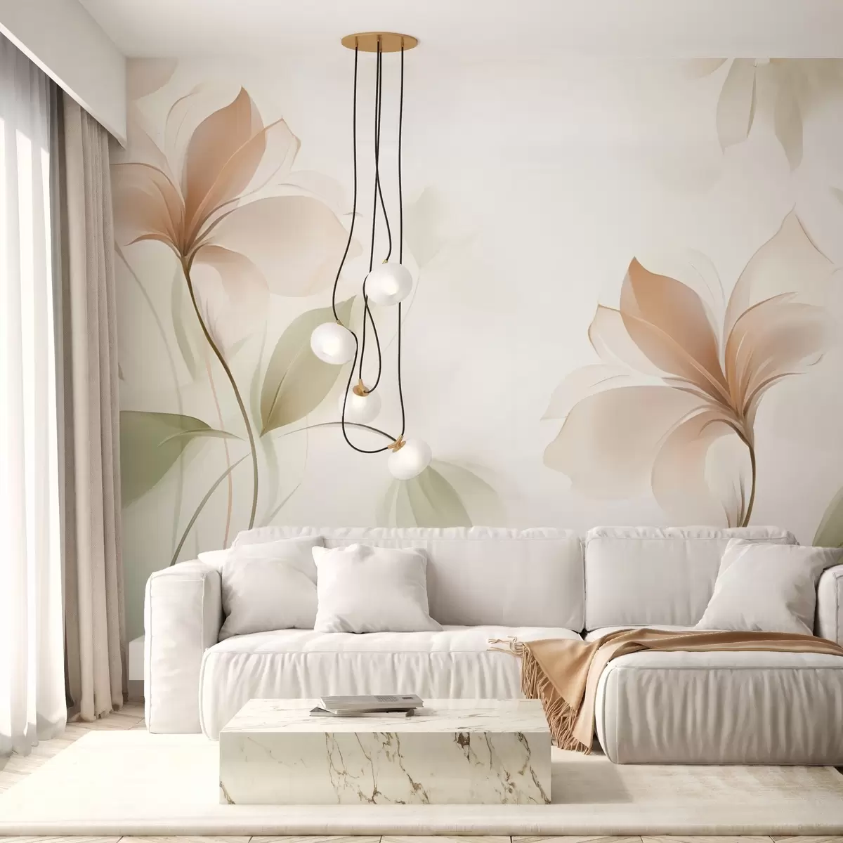 Тапете за зид Прозирно цвеће у топлим беж и ружичастим тоновима бр. w04397