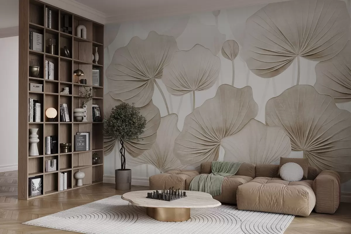 Тапете за зид Листови лотоса са имитацијом избледеле текстуре бр. w04412v1