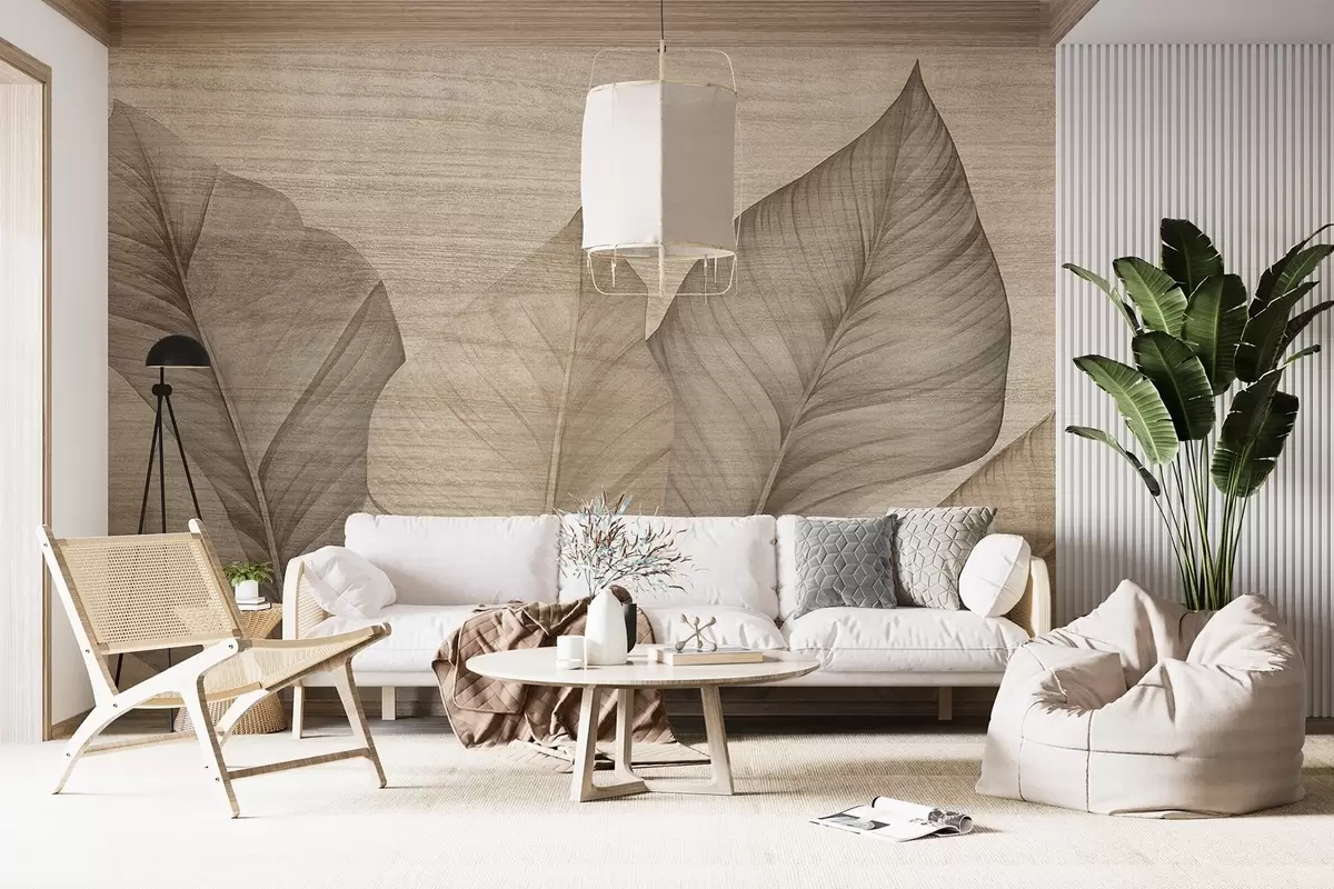 Тапете за зид Оштро лишће са преклапајућом текстуром бр. w04438