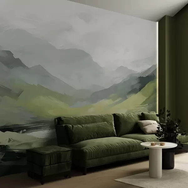 Тапете за зид Апстрактни планински пејзаж у нијансама зелене бр. w04447