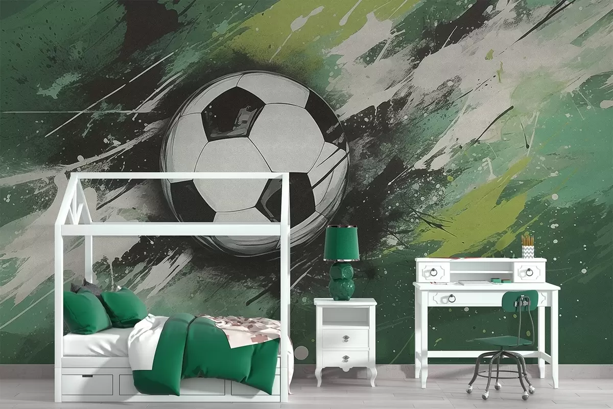 Тапете за зид Фудбалска лопта са замагљеним графитима у позадини бр. w04467