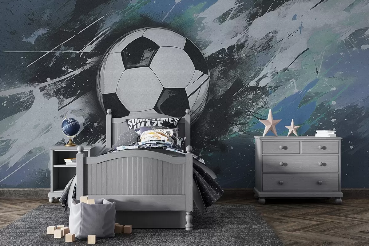Тапете за зид Фудбалска лопта са замагљеним графитима у позадини бр. w04467v1