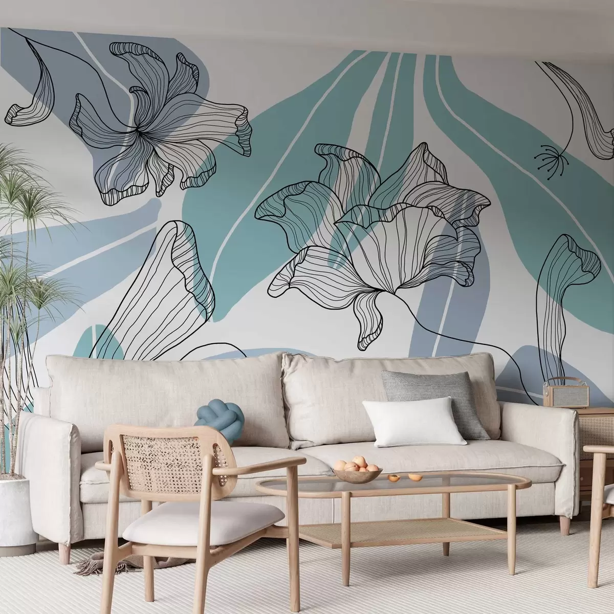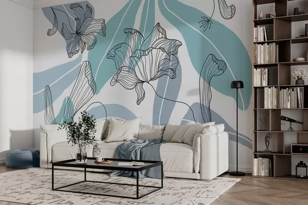 Тапете за зид апстрактно лишће и цвеће у плавим тоновима бр. w04499v2