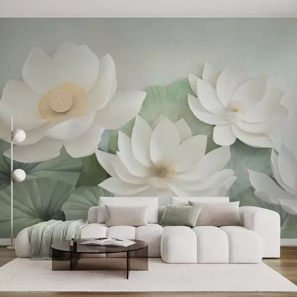 Тапете за зид Цветови лотоса у лишћу бр. w04539